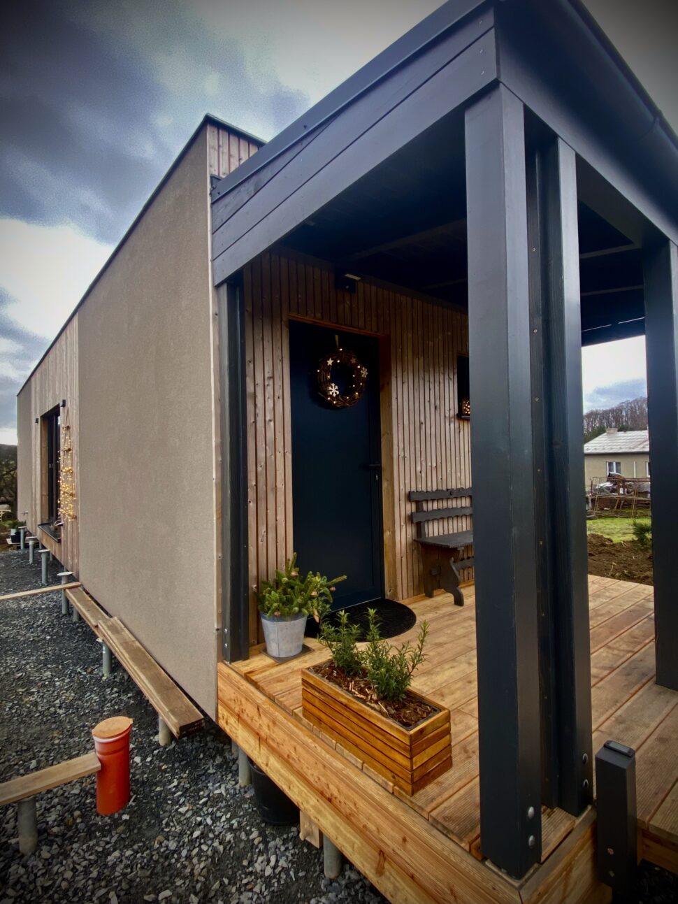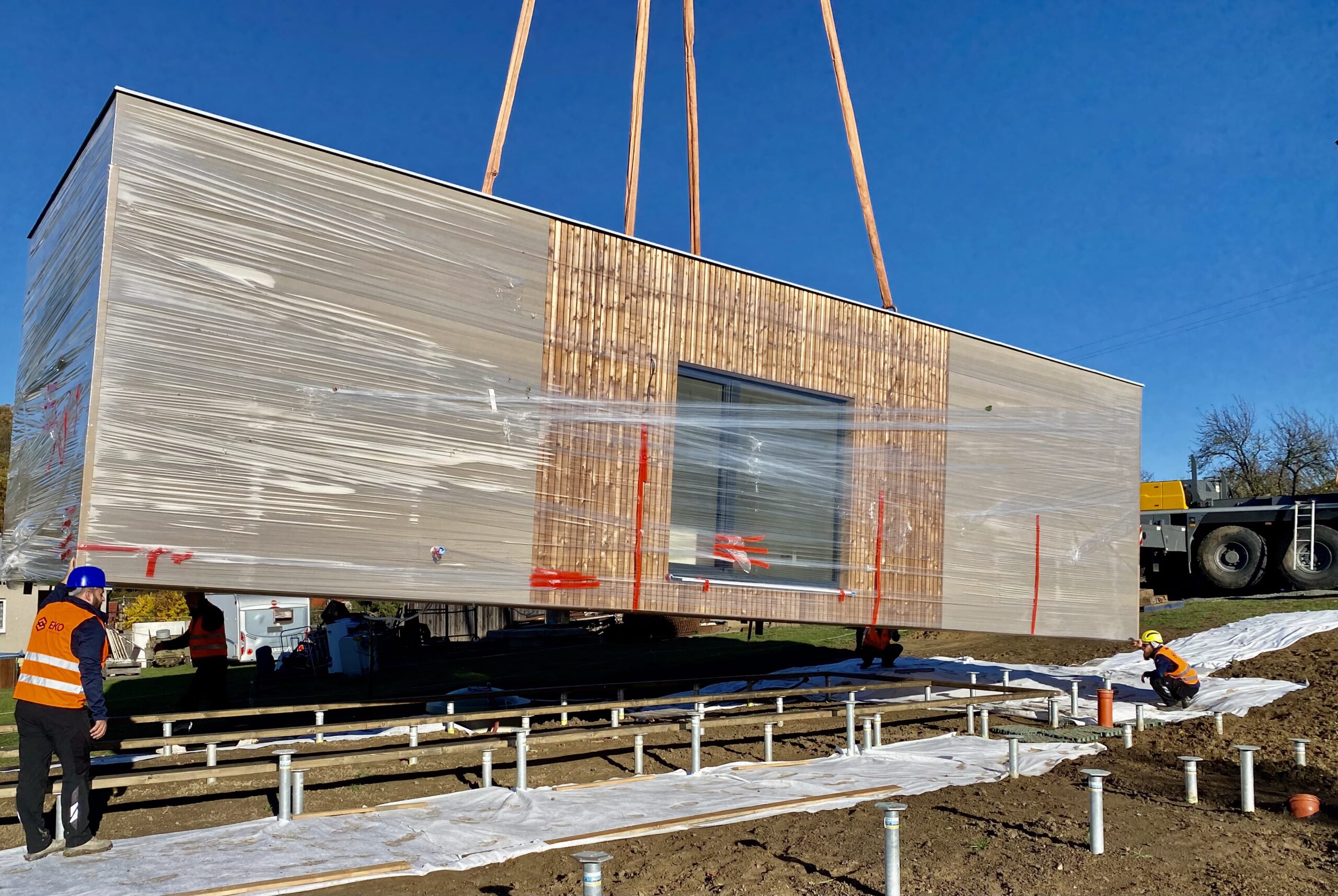 Hostsfera představuje moderní a jednoduchý způsob, jak rychle a pohodlně bydlet uprostřed přírody. Jedná se o pasivní dřevomodulární stavbu, stojící na pilotech třicet čísel nad povrchem země. Právě sem do míst jako jsou Hostýnky, území plného podzemních pramenů, takový typ domu skvěle padne. Sestavovat moduly si můžete různě. Realizace s firmou Ekomodular je skvělá, rádi vám umožní i postupné budování. Já jsem si zvolila dvoumodulovou variantu, třináct a sedm metrů s krytou terasou.